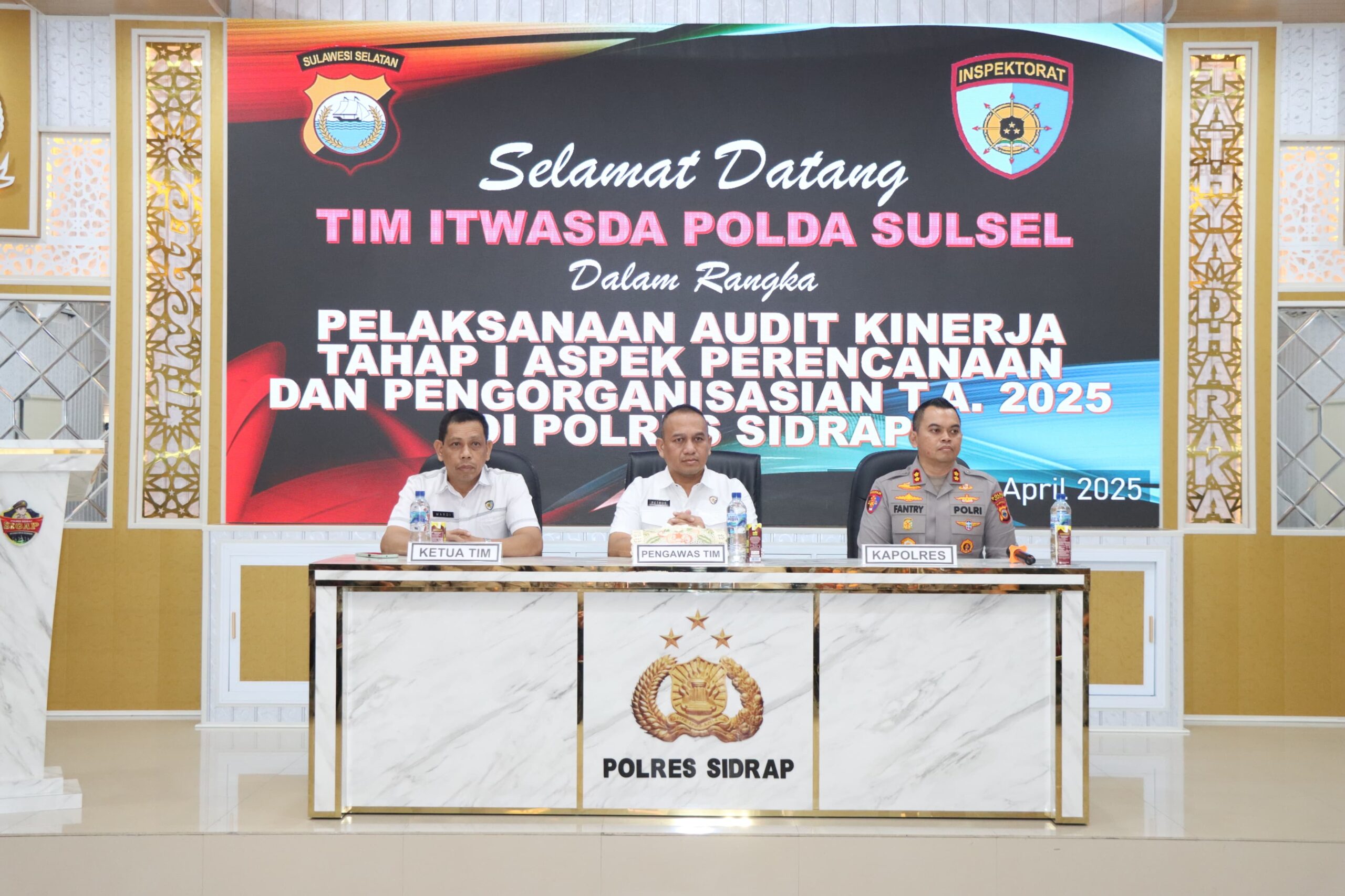 Dalam sambutannya, Kapolres Sidrap menyampaikan apresiasi atas kunjungan dan supervisi yang dilakukan oleh Tim Itwasda Polda Sulsel. Ia menegaskan bahwa pihaknya siap mendukung penuh pelaksanaan audit serta berkomitmen meningkatkan kualitas perencanaan dan pengorganisasian di lingkungan Polres Sidrap.