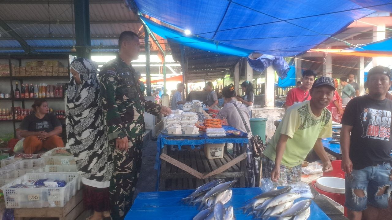 Sidrap – Babinsa Desa Allakuang, Koramil 03/Maritengngae, Serda Eman Rachman, melaksanakan pemantauan ketersediaan dan harga bahan pokok di Pasar Tradisional Allakuang, Desa Allakuang, Kecamatan Maritengngae, Kabupaten Sidrap, Senin (11/08/2025)