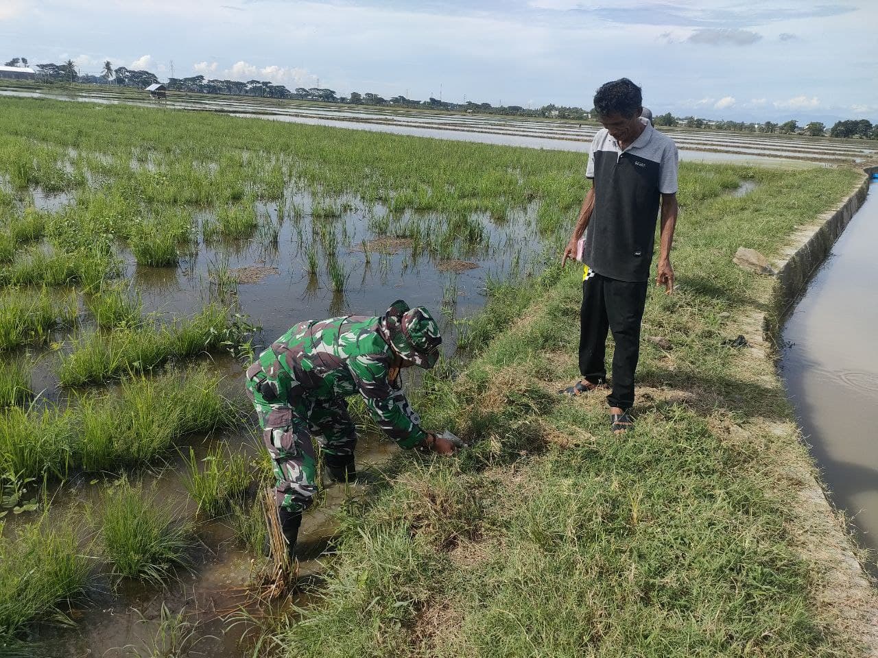 Sidrap – Babinsa Desa Mario dari Koramil 1420-06/Panca Rijang, Sertu Bohaseng, turut ambil bagian dalam kegiatan pengendalian hama tikus bersama Penyuluh Pertanian Lapangan (PPL) dan Kelompok Tani (Poktan) Bulu Cungke.