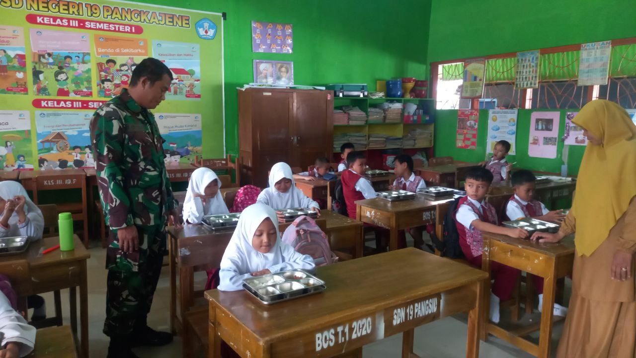 SIDRAP – Bintara Pembina Desa (Babinsa) dari Koramil di bawah naungan Kodim 1420/Sidrap turut serta mendampingi pendistribusian makanan bergizi gratis kepada 45.204 penerima manfaat di seluruh wilayah Kabupaten Sidenreng Rappang (Sidrap), pada hari ini, 10 November 2025.