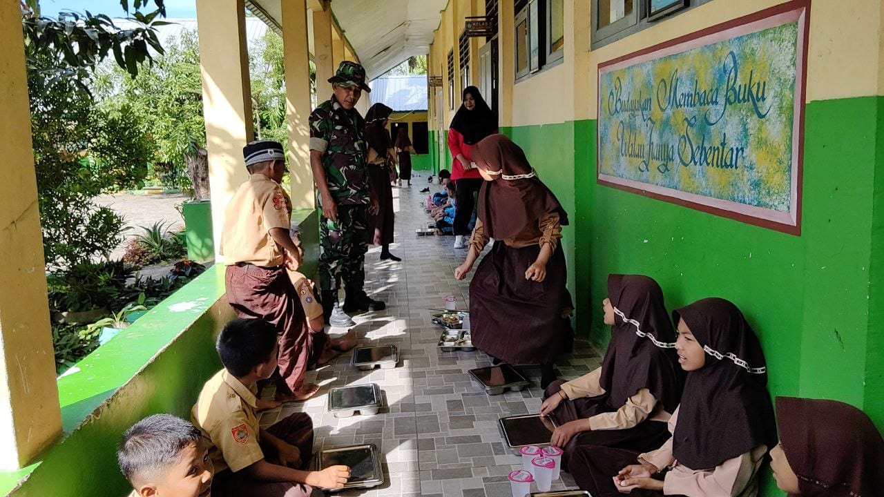 Dalam kegiatan ini, Babinsa memantau proses pembagian makanan bergizi kepada siswa sekolah dan peserta non didik. Pemantauan ini bertujuan untuk memastikan bahwa distribusi berjalan lancar, tepat sasaran, dan makanan yang diberikan sesuai dengan standar gizi yang ditetapkan.