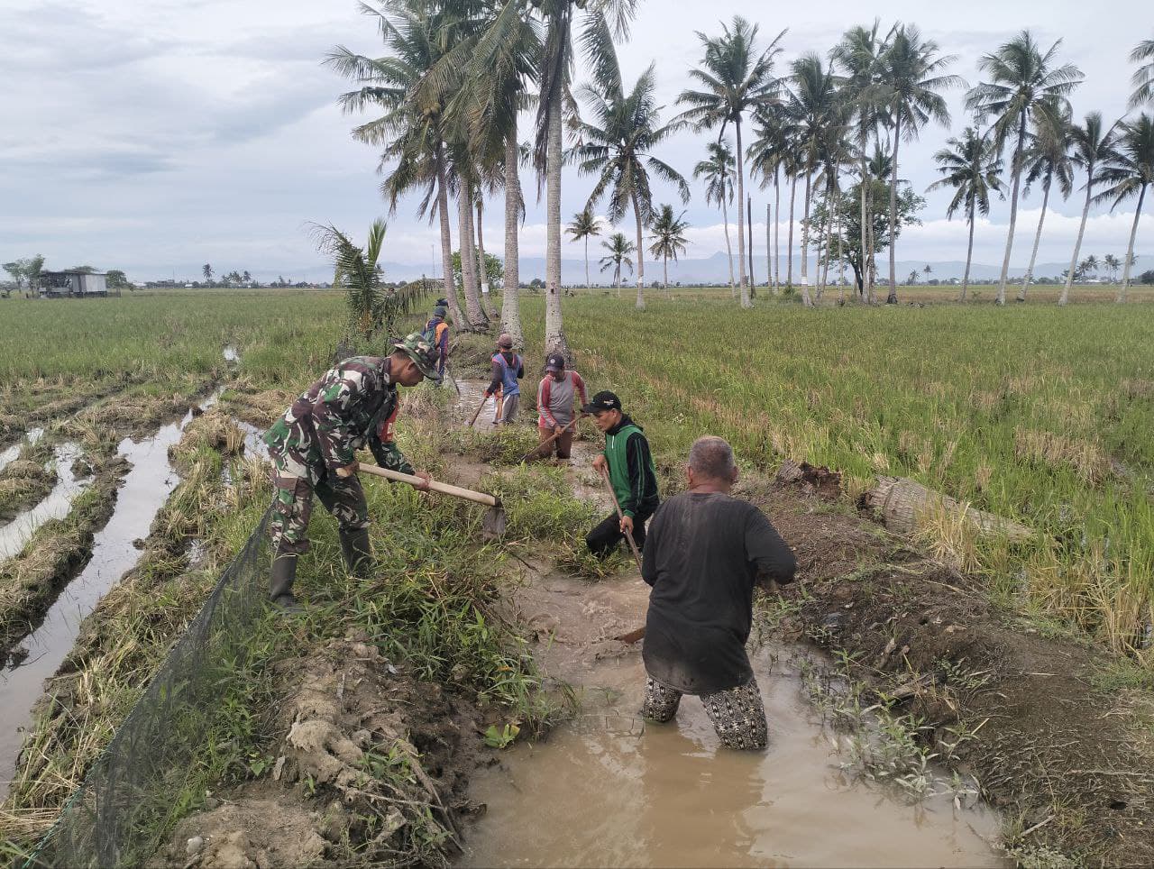 Serka Usman Sulfiki(Babinsa) dalam kesempatan tersebut menyampaikan bahwa saat ini sudah memasuki tahap persiapan dan turun sawah, Untuk itu segala kendala yang menghambat para petani dalam pekerjaan bertani harus diantisipasi dengan baik salah satunya membersihkan saluran irigasi ini.