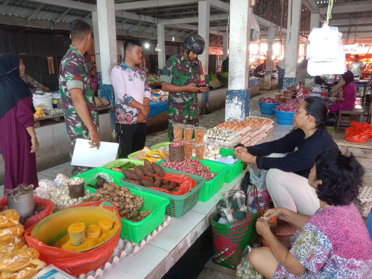 Sidrap, – Babinsa Koramil 1420-01/Panca Lautang, Sertu Isman dan Koptu Asis Tuwo, melaksanakan kegiatan pemantauan harga dan ketersediaan bahan pokok di Pasar Sentral Bilokka, Kecamatan Panca Lautang, Kabupaten Sidenreng Rappang (Sidrap), pada Rabu (11/6/2025).