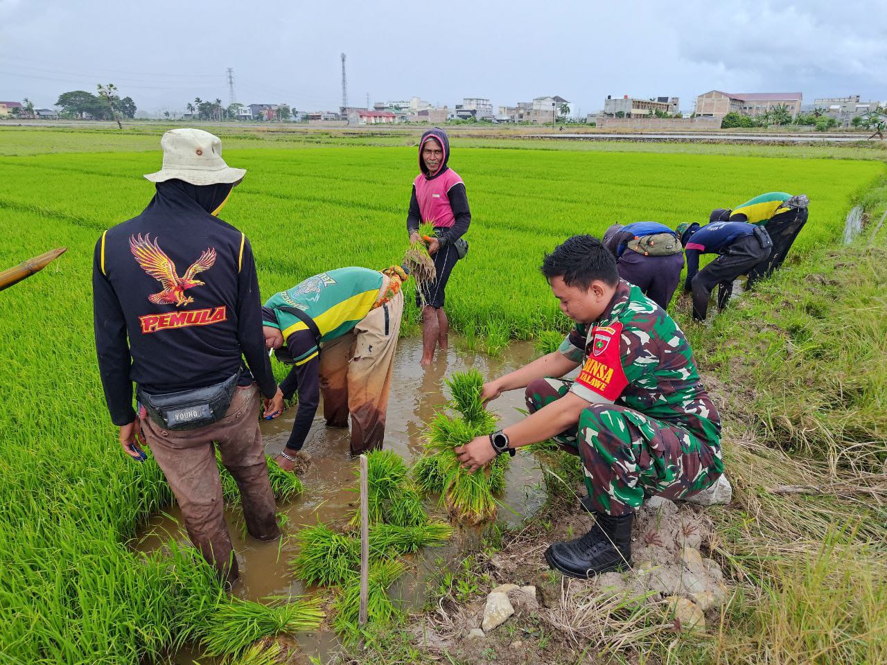 Hari ini, Babinsa Desa Talawe dari Koramil 1420-03/Maritengngae, Serda M. Ali Hanapi, turun langsung ke sawah mendampingi petani melaksanakan tahapan krusial menjelang musim tanam, yaitu pencabutan bibit padi.