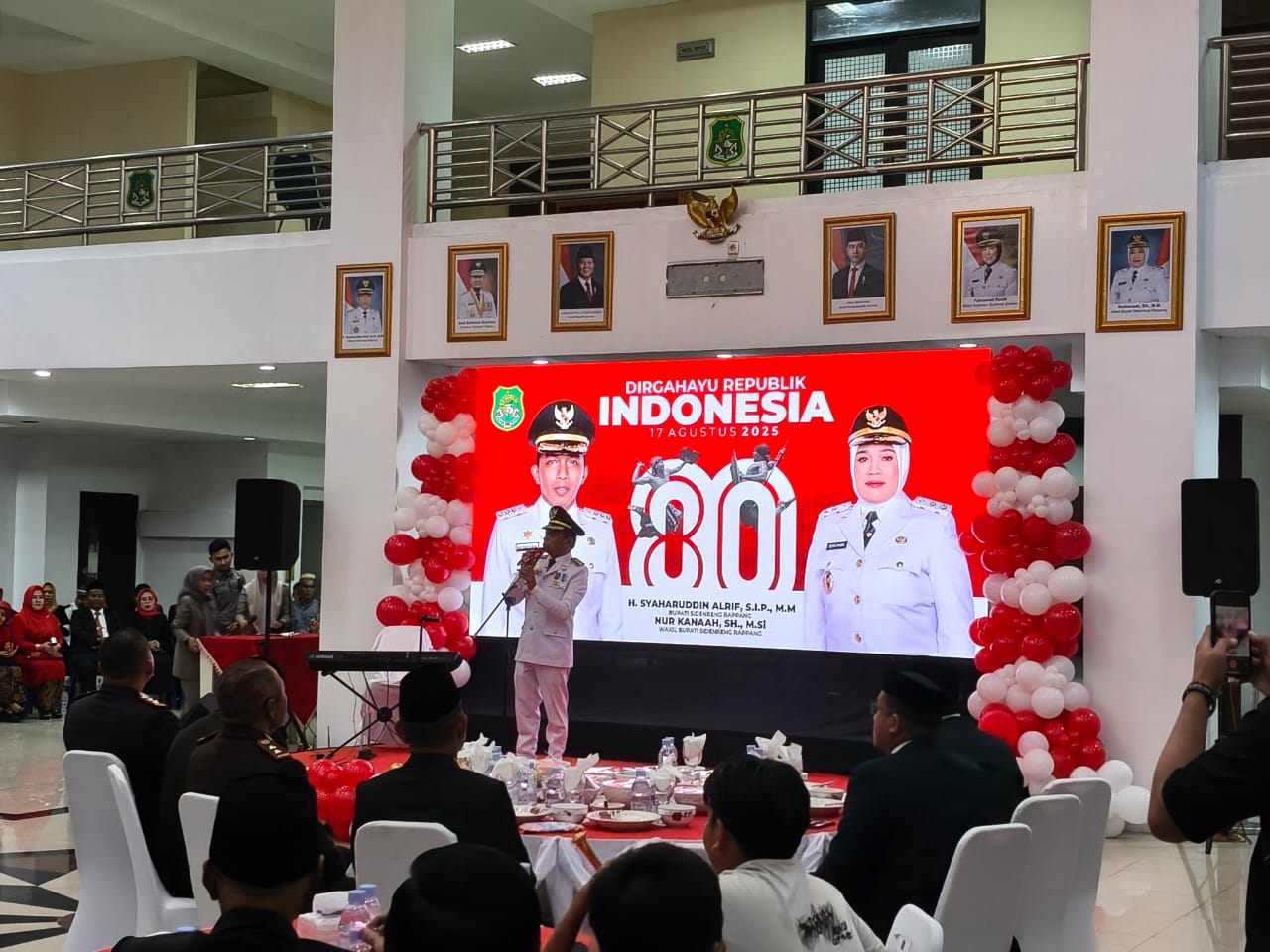 Sidrap – Komandan Kodim 1420/Sidrap Letkol Inf Awaloeddin, S.I.P. menghadiri acara Malam Ramah Tamah Forkopimda bersama Paskibraka yang bertugas pada Upacara HUT Ke-80 Kemerdekaan Republik Indonesia, yang digelar di Lapangan SKPD Pemkab di Jalan Harapan Baru Kel. Batu Lappa Kec. Watang Pulu Kab. Sidrap, Minggu malam (17/08/2025).