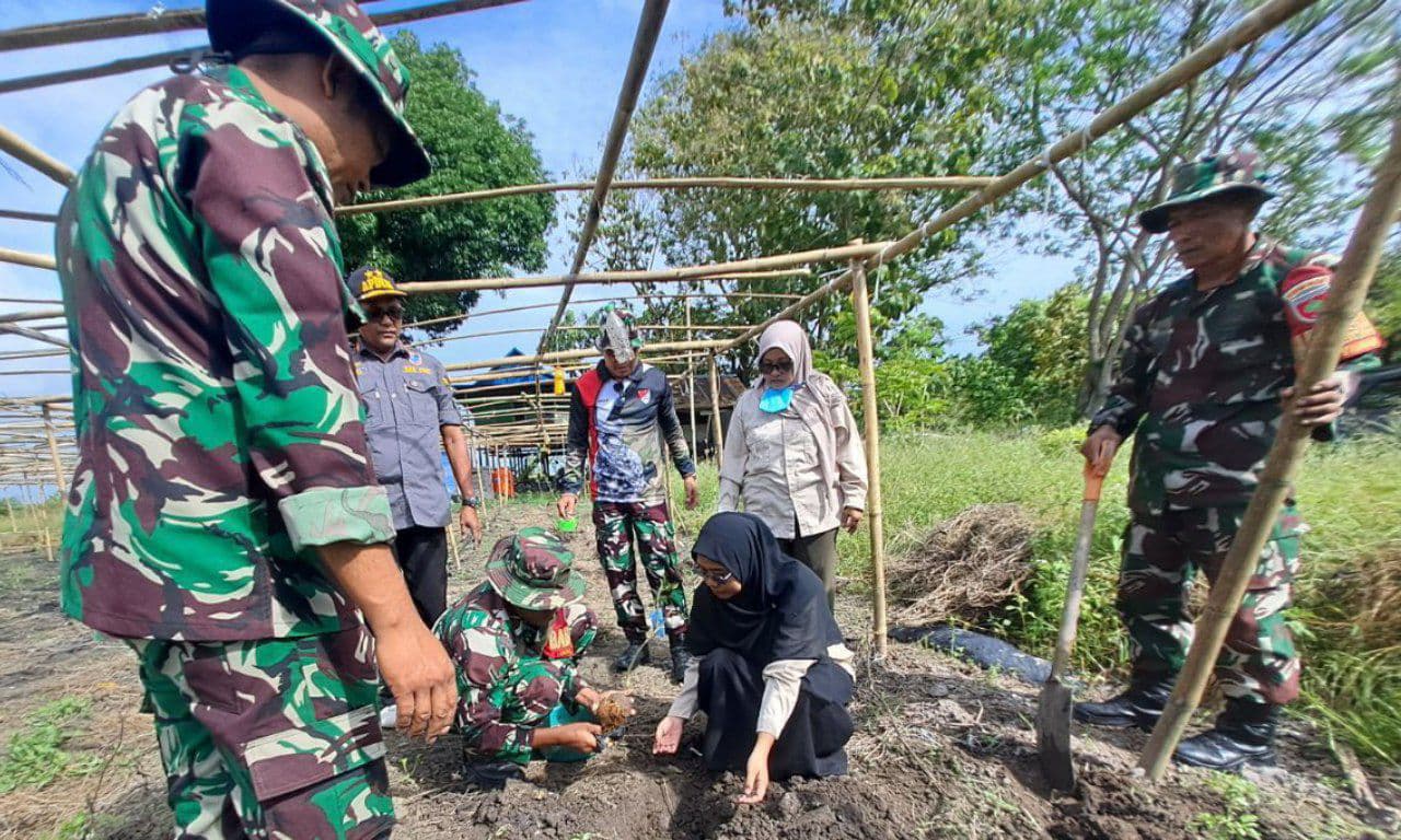 SIDRAP- Danramil 1420-03/Maritengngae Kapten Arh Ridwan Baharuddin bersama masyarakat melaksanakan kegiatan penanaman pohon bertempat di Desa Mojong Kec. Watang Sidenreng Kab. Sidrap Minggu (20/04/2025).