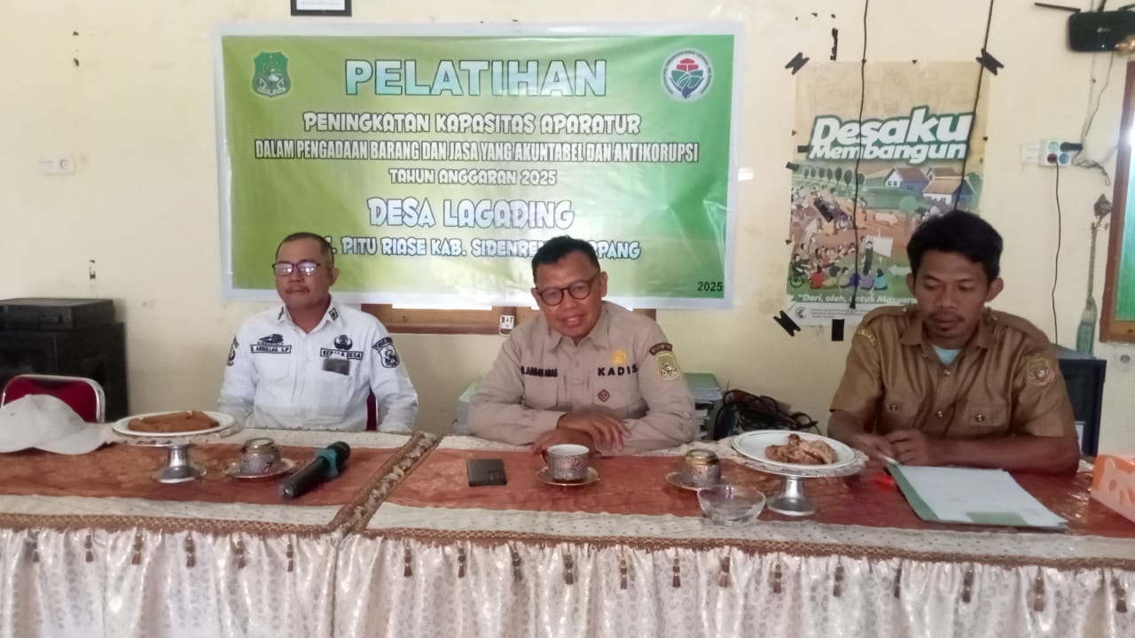 Lagading – Pemerintah Desa Lagading, Kecamatan Pitu Riase, Kabupaten Sidenreng Rappang, menggelar pelatihan peningkatan kapasitas aparatur desa pada Tahun Anggaran 2025. Kegiatan ini bertujuan untuk memperkuat kompetensi dan profesionalitas perangkat desa dalam menjalankan tugas pemerintahan, pembangunan, serta pelayanan kepada masyarakat.