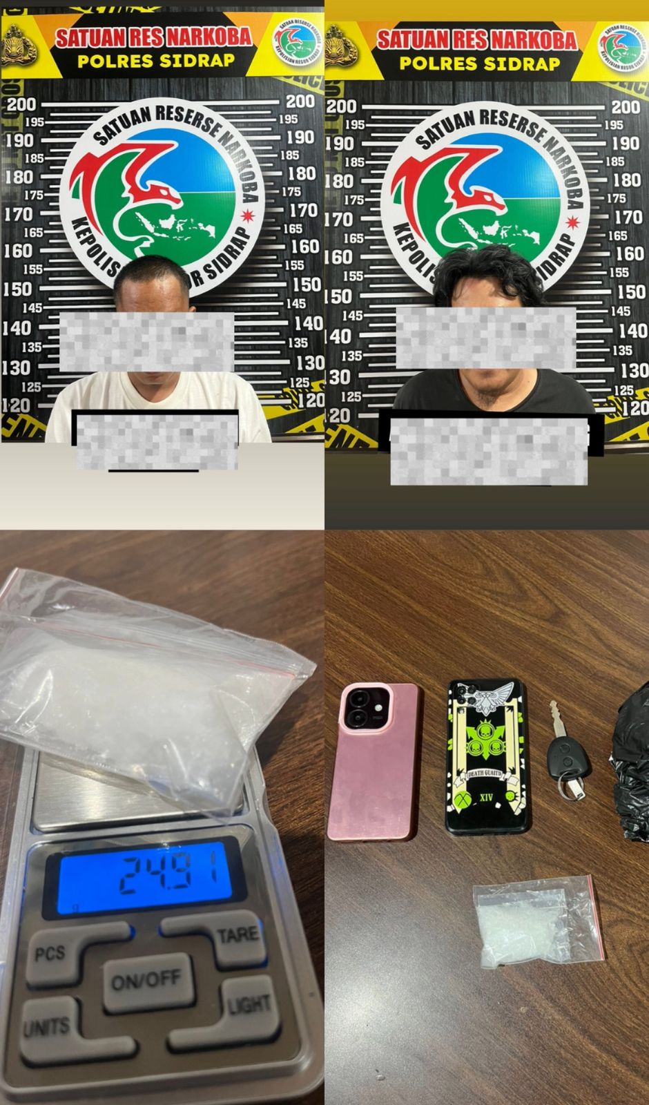Dalam penggeledahan tersebut, petugas berhasil menemukan dan menyita sejumlah barang bukti: dua unit telepon genggam, satu unit kendaraan, dan yang utama—puluhan gram narkotika jenis sabu-sabu dalam kemasan siap edar.