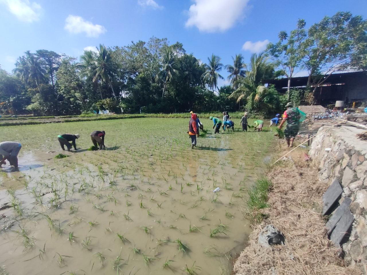 Sertu Bohaseng, Babinsa Desa Mario, bersama anggota Petugas Penyuluh Lapangan (PPL) Kecamatan Kulo dan anggota Kelompok Tani (Poktan) Pasalue, turun langsung ke sawah untuk melaksanakan penanaman padi. Aksi nyata ini menunjukkan sinergi yang harmonis antara TNI, penyuluh pertanian, dan petani dalam mewujudkan target panen tiga kali setahun (IP 300).