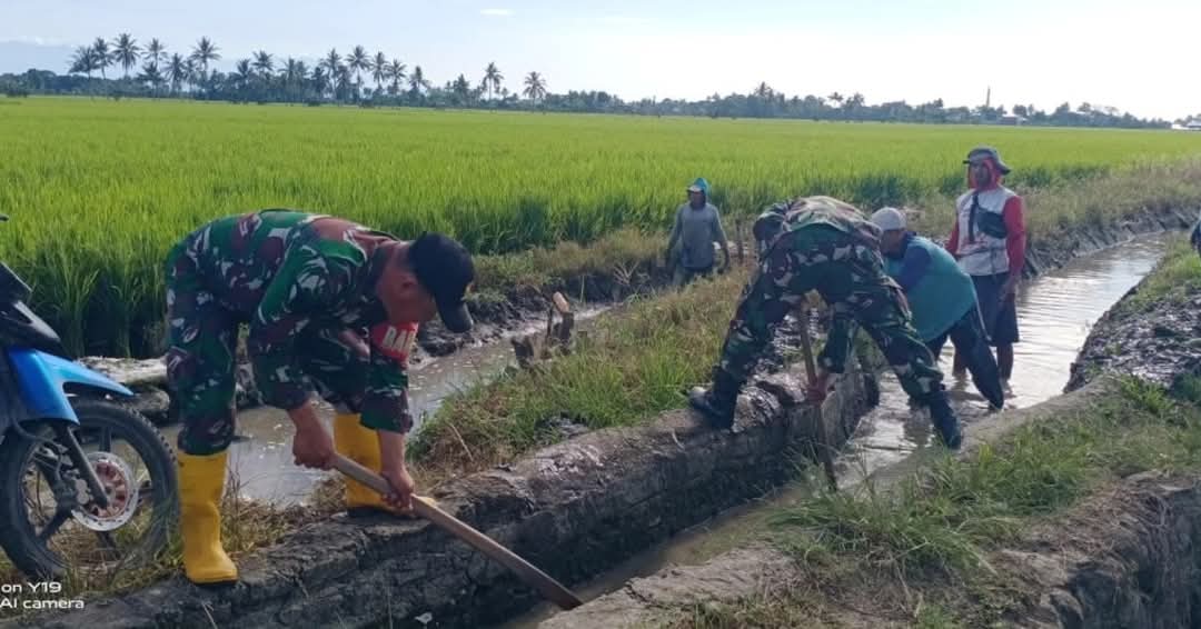 “Untuk meningkatkan kesejahteraan para petani, saluran irigasi yang merupakan penyedia bahan baku air tentunya harus dijaga bersama-sama, sehingga kebutuhan air di persawahan terpenuhi agar padi tumbuh subur”, jelas Serma Asdar.