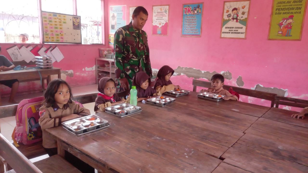 Sidrap – Babinsa Ramil Jajaran Kodim 1420/Sidrap kembali menunjukkan komitmennya yang kuat dalam mendukung program-program unggulan pemerintah daerah, Melalui peran aktif para Babinsa dari seluruh Koramil di bawah naungan Kodim 1420/Sidrap, hari ini melakukan pendampingan secara masif terhadap penyaluran program Makanan Bergizi Gratis (MBG) di seluruh wilayah Kabupaten Sidenreng Rappang. Jumat 17 Oktober 2025