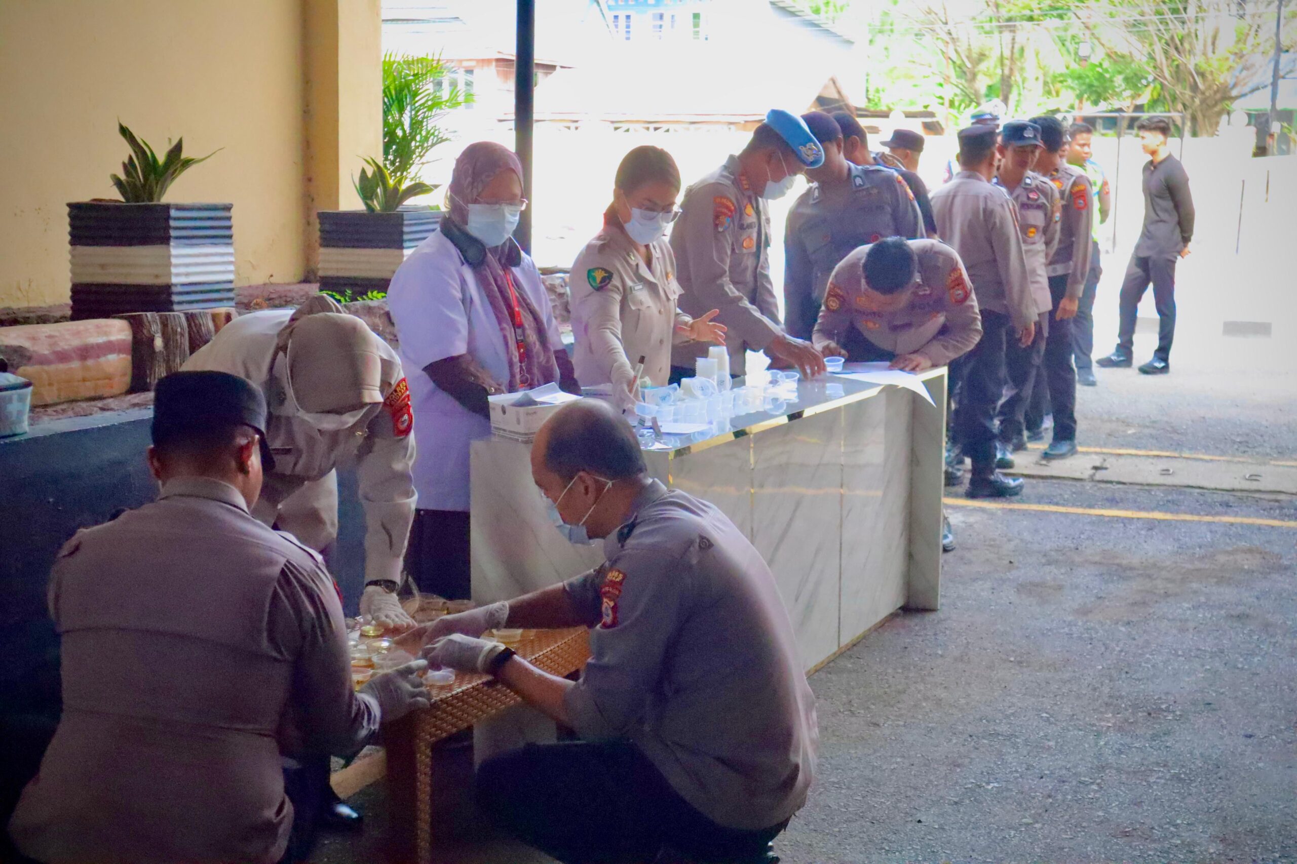 “Hari ini kita lakukan pemeriksaan urine kepada sejumlah personel secara dadakan. Ada total 165 personel yang menjalani tes urine, dan Alhamdulillah secara keseluruhan hasilnya negatif sebagai pengguna narkoba,” terang Kapolres.
