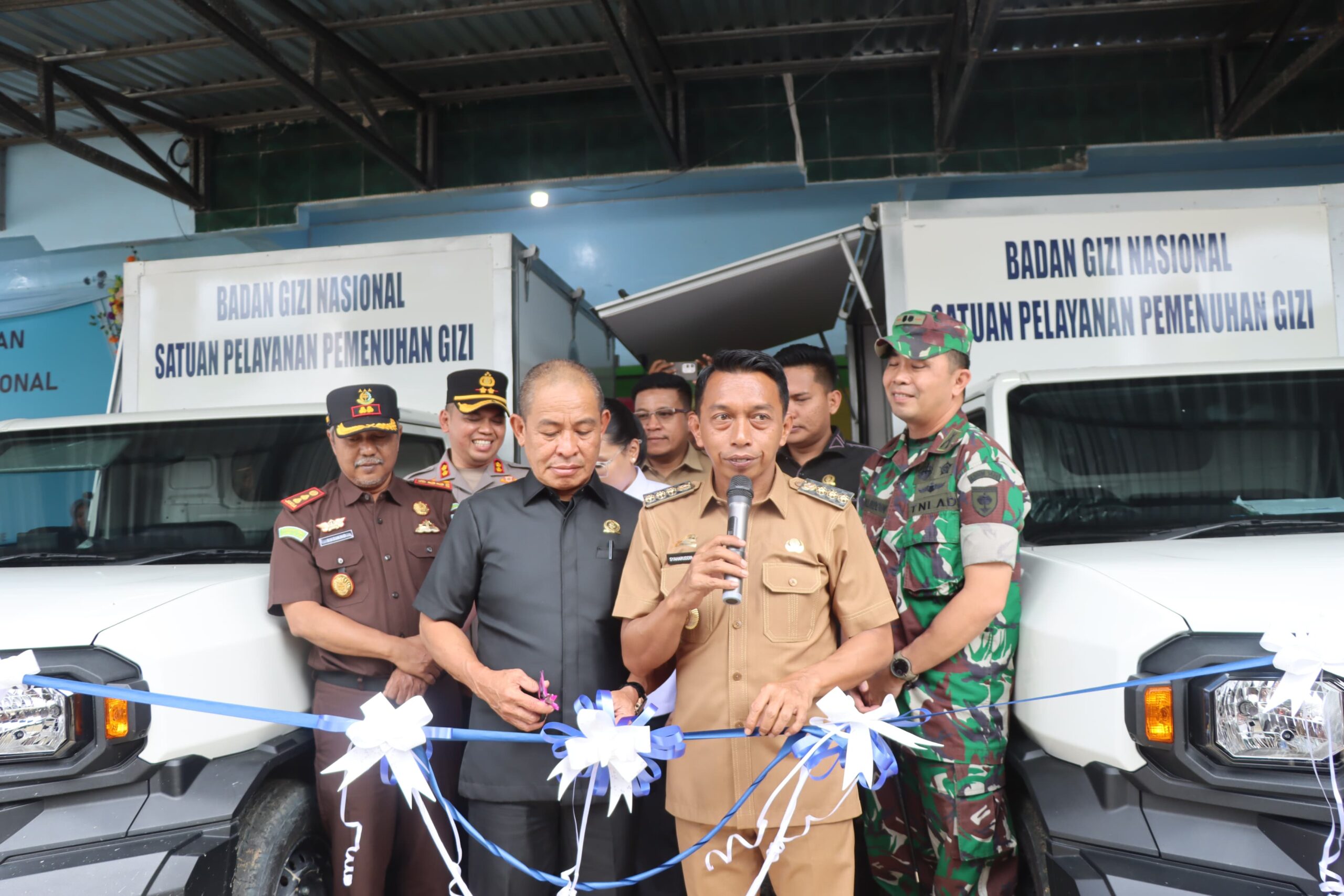 Peresmian SPPG ditandai dengan pemotongan pita dan prosesi pemberangkatan logistik oleh jajaran Forkopimda dan disaksikan sejumlah tamu undangan yang hadir.