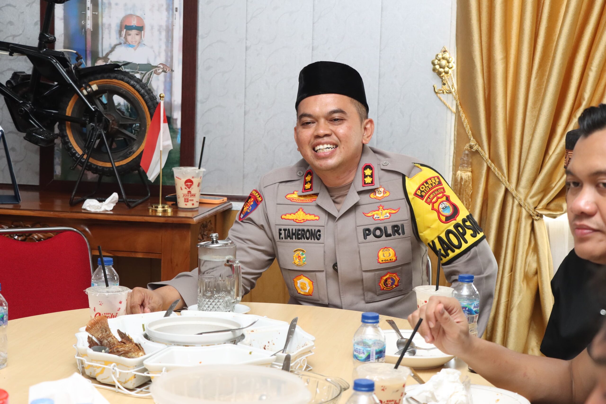SIDRAP – Dalam suasana penuh kebersamaan, Kapolres Sidrap AKBP Fantry Taherong mengajak Petugas Kebersihan di lingkungan Polres Sidrap untuk makan siang bersama di ruang kerjanya, Jumat (28/02/2025). Kegiatan ini menjadi wujud nyata dari prinsip “Berdiri Sama Tinggi, Duduk Sama Rendah,” yang menegaskan kesetaraan sebagai mahluk ciptaan Tuhan Yang Maha Esa.