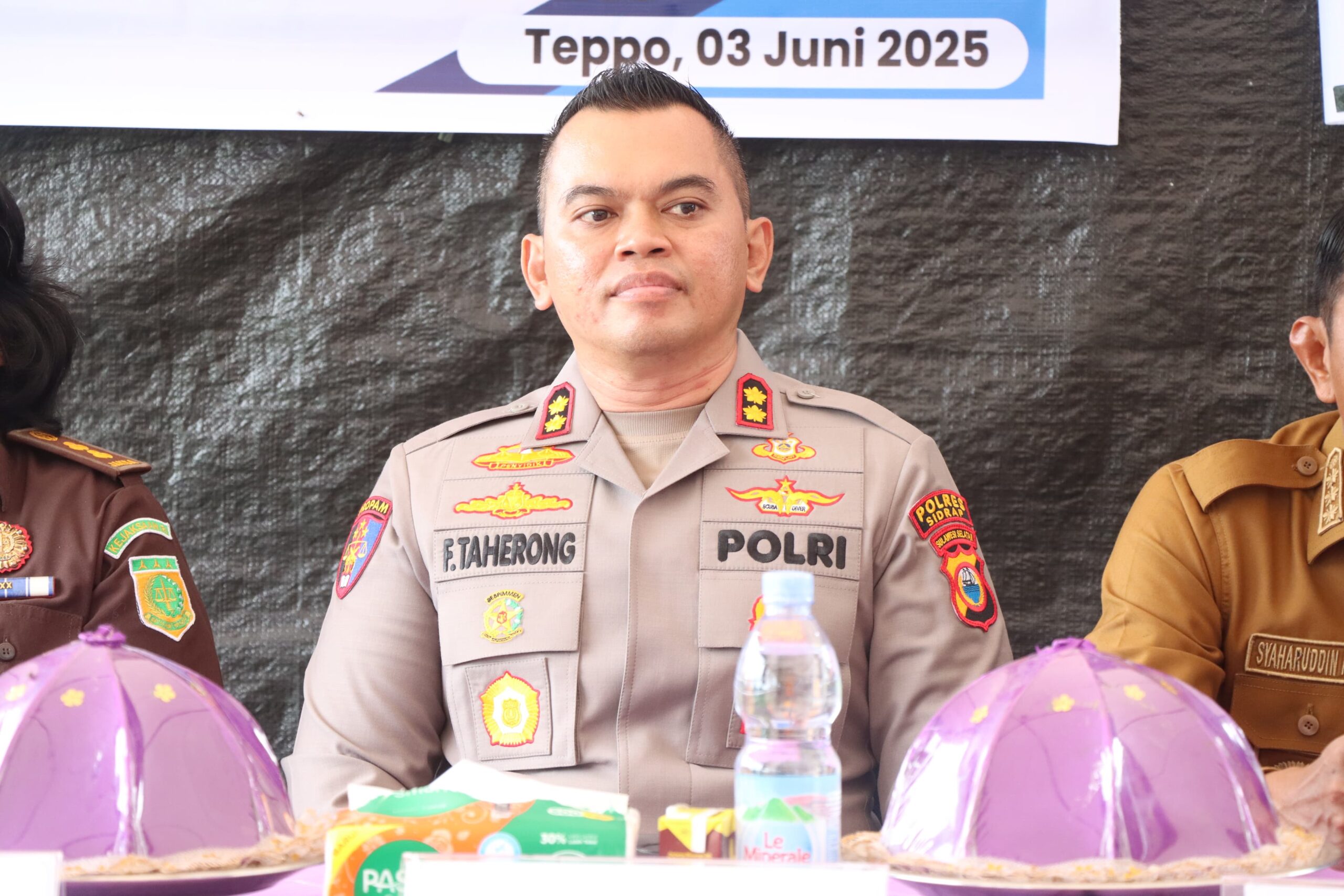 SIDRAP, – Kapolres Sidrap, AKBP Fantry Taherong, bersama Penjabat Kajari Sidrap, Penjabat Sekda Sidrap, dan Kepala Badan Pertanahan Nasional (BPN) Sidrap, turut mendampingi Bupati Sidrap dalam kunjungan kerja ke Desa Teppo, Kecamatan Tellu Limpoe, Kabupaten Sidrap, pada Selasa (3/6/2025).