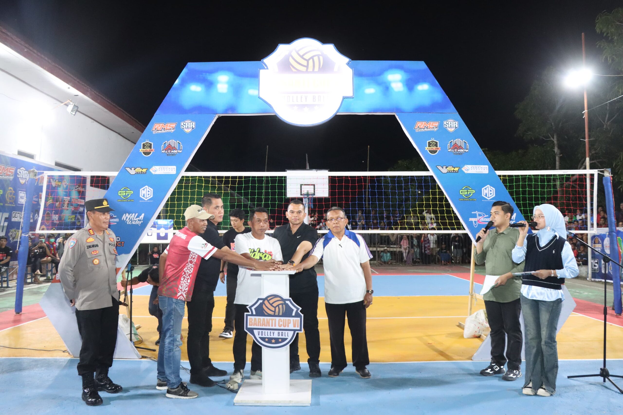 SIDRAP – Kapolres Sidrap, AKBP Fantry Taherong bersama Bupati Sidrap terpilih H. Syaharuddin Alrif, secara resmi membuka Turnamen Bola Voli Baranti Cup VI yang digelar di Kecamatan Baranti, Rabu (12/2/25), malam. Turnamen ini merupakan ajang tahunan yang telah menjadi tradisi untuk meningkatkan semangat olahraga dan kebersamaan di tengah masyarakat.