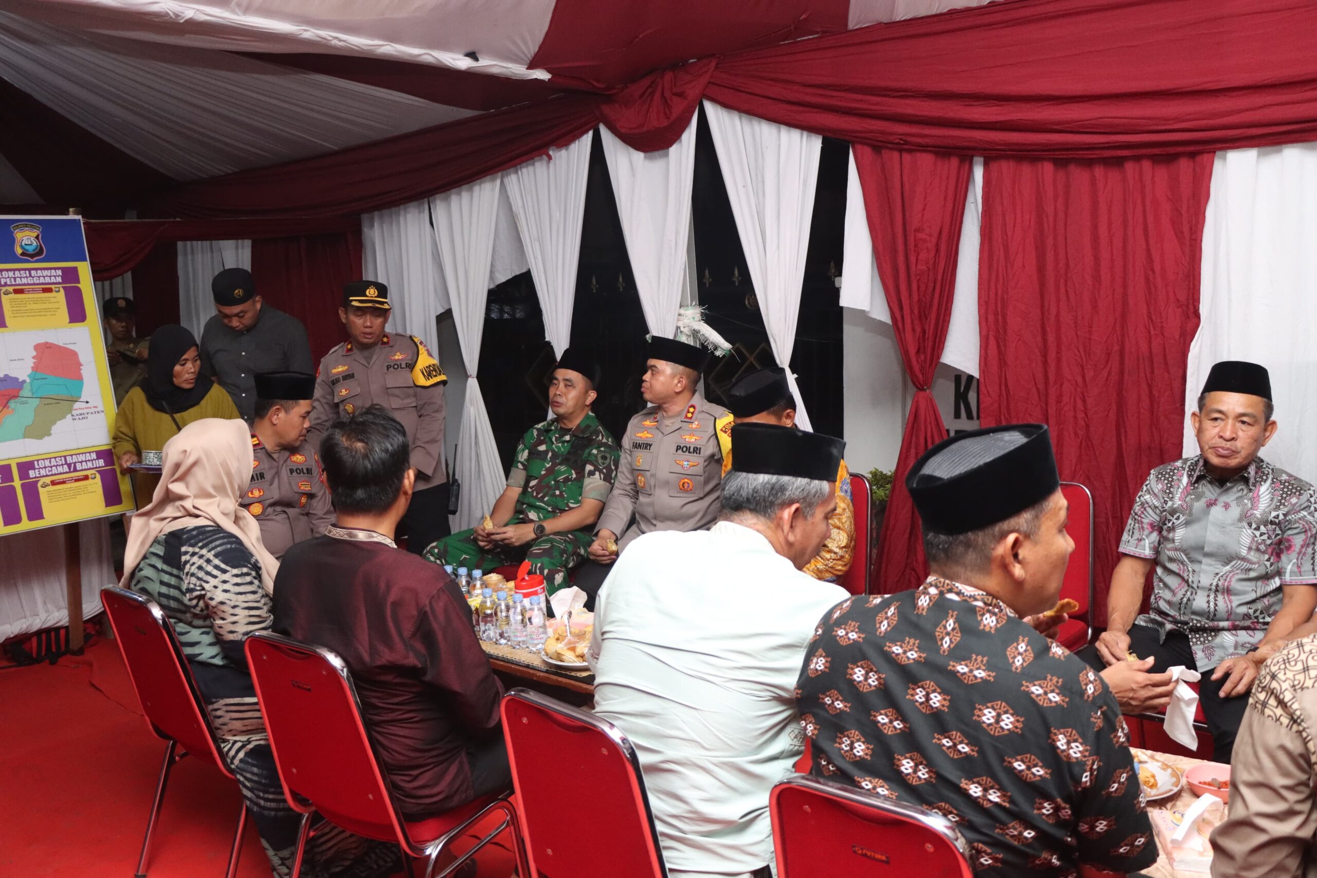 SIDRAP, – Kapolres Sidrap, AKBP Fantry Taherong bersama Pimpinan Daerah melakukan pengecekan langsung ke Pos Pengamanan (Pos Pam) Operasi Ketupat 2025 di Kecamatan Dua Pitue dan Kecamatan Panca Rijang. Kunjungan ini bertujuan untuk memastikan kesiapan personel dalam memberikan pelayanan dan pengamanan kepada masyarakat selama arus mudik dan balik Lebaran. Kamis (27/03/25) malam.