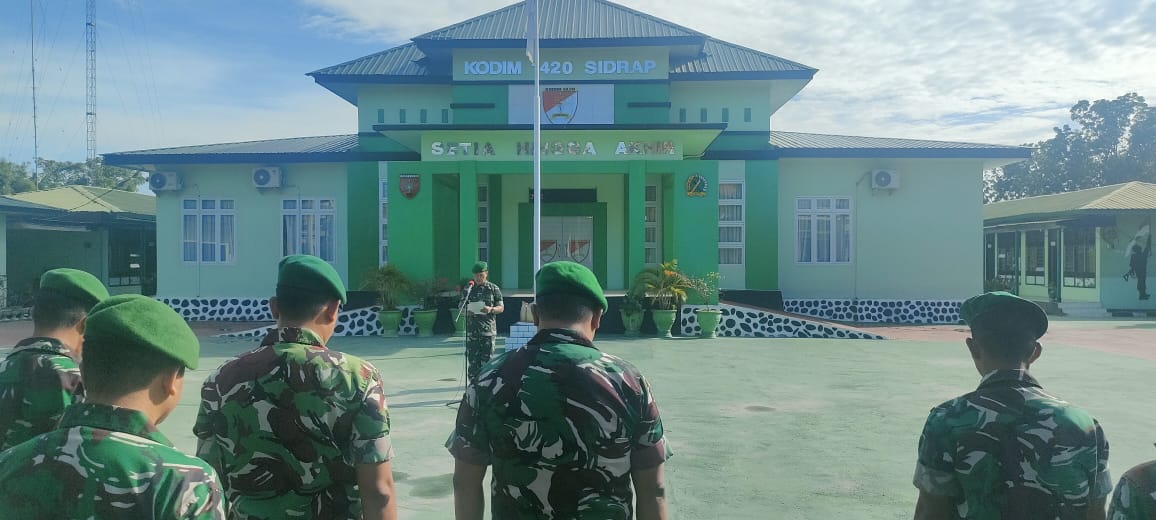 Kegiatan tersebut dipimpin oleh Mayor Inf Wahyudi, SE selaku Kasdim 1420/Sidrap dan dihadiri oleh para Perwira Staf, Danramil jajaran Kodim 1420/Sidrap, anggota unit Intel Kodim, serta seluruh personel militer dan PNS Kodim 1420/Sidrap.