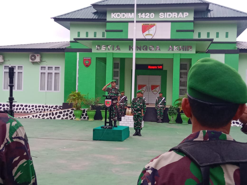 Sidrap – Komando Distrik Militer (Kodim) 1420/Sidrap secara rutin menggelar upacara bendera mingguan setiap hari senin yang bertujuan untuk memupuk jiwa patriotisme, kejuangan dan nasionalisme, mengenang jasa para Pahlawan serta sebagai bentuk penghormatan kepada Sang Saka Merah Putih. Senin (07/07/2025).