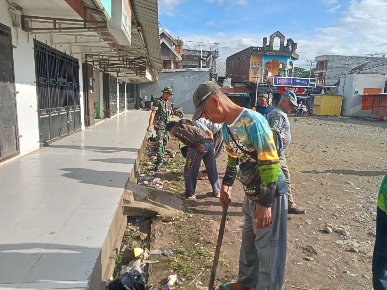 SIDRAP- Peduli terhadap kebersihan Lingkungan, Babinsa Koramil-02/Tellu Limpoe beserta warga melaksanakan aksi pembersihan pasar Amparita Kelurahan Todang Pulu Kec.Tellu Limpoe Kabupaten Sidrap, Senin (17/02/2025).