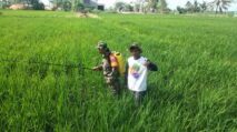 Babinsa Koramil 03/Maritengngae Bantu Petani Semprot Pupuk di Kelurahan Lautang Benteng