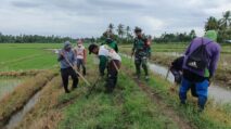 Babinsa Koramil 01/Panca Lautang Bersama Poktan Gotong Royong Bersihkan Saluran Irigasi