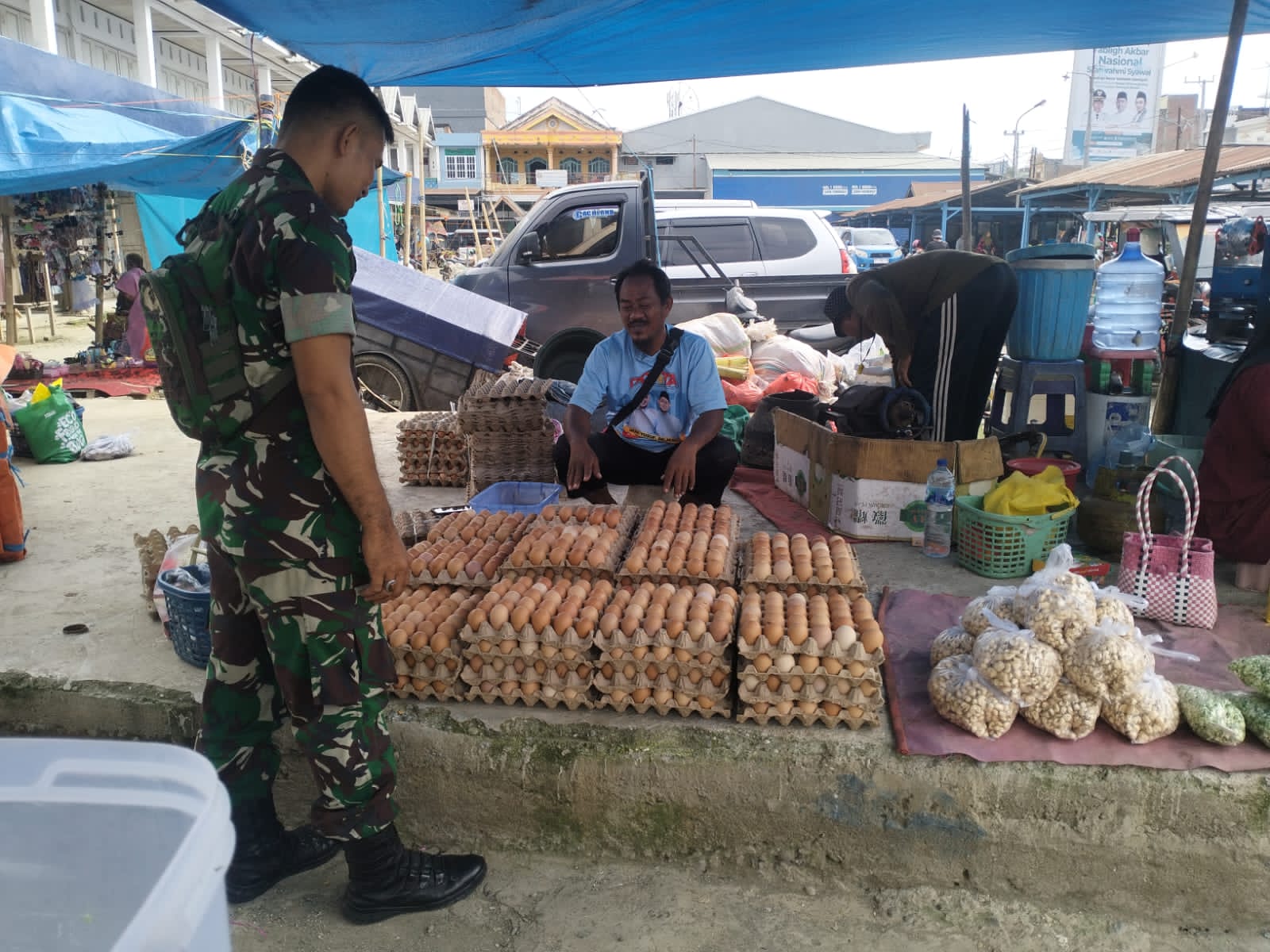 Dalam pemantauan tersebut, Babinsa menanyakan harga berbagai produk sembako seperti beras, gula, minyak goreng, telur, ikan dan bahan makanan pokok lainnya. Babinsa juga berinteraksi dengan pedagang dan warga setempat untuk mendapatkan informasi terkait perubahan harga dan ketersediaan barang.