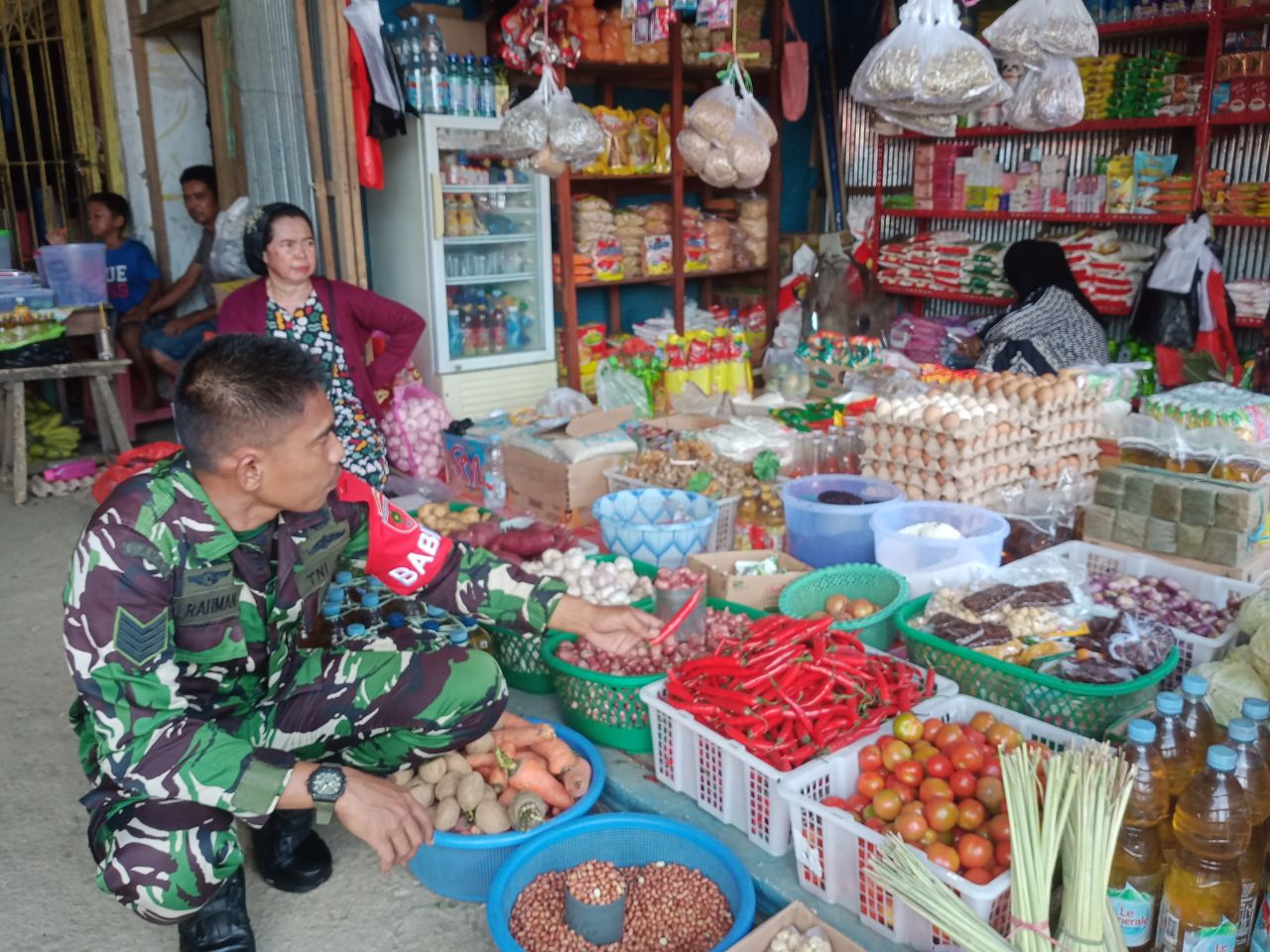 ​Serma Afzalul Rahman turun langsung berinteraksi dengan para pedagang dan pembeli untuk mendapatkan informasi valid mengenai pergerakan harga komoditas utama, seperti beras, minyak goreng, gula, telur, dan cabai.