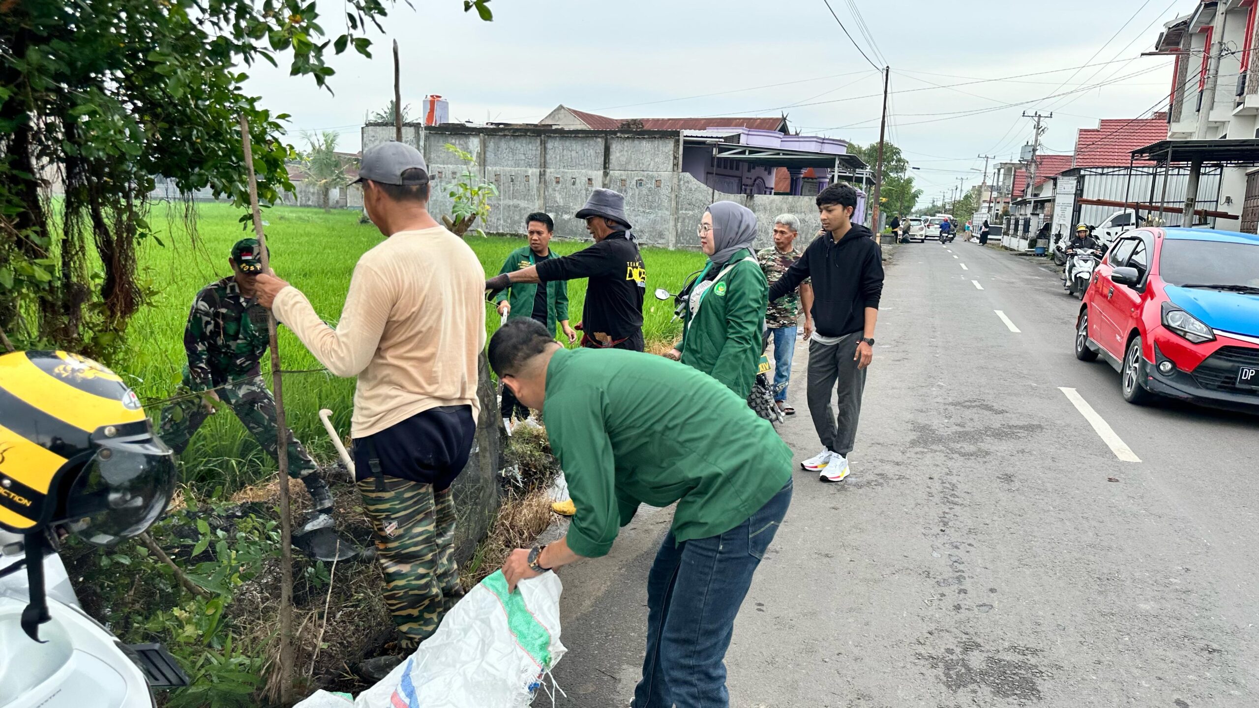 Sidrap — jum’ at 14 february 2025 Dalam upaya menjaga kebersihan lingkungan dan meningkatkan kesadaran masyarakat, Pelda Muh Yunus, S.H. bersama mahasiswa Kuliah Kerja Nyata (KKN) dan staf kelurahan menggelar aksi gotong royong membersihkan lingkungan