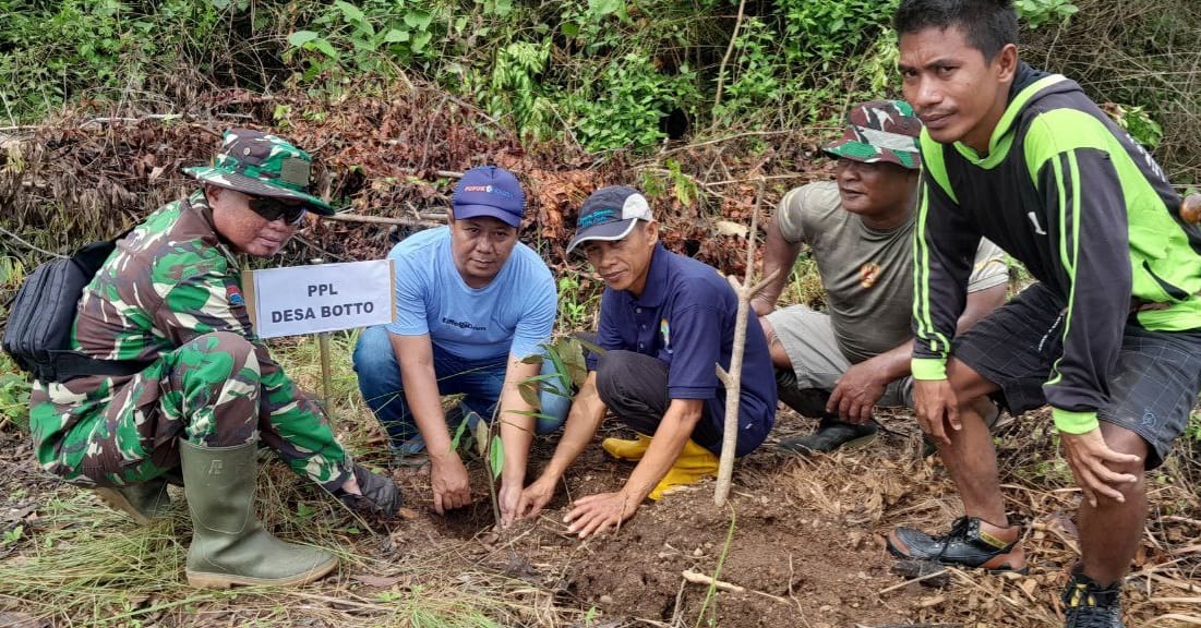 Dalam rangka untuk menjaga kelestarian lingkungan, Danposramil Pitu Riase Koramil 1420-05/Dua Pitue Pelda Rusdi bersama dengan Babinsa, Aparat Pemerintah Desa dan PPL serta warga sekitar melaksanakan penghijauan dengan menanam pohon di wilayah binaan Desa Botto Kecamatan Pitu Riase Kabupaten Sidrap, Minggu (29/06/2025)