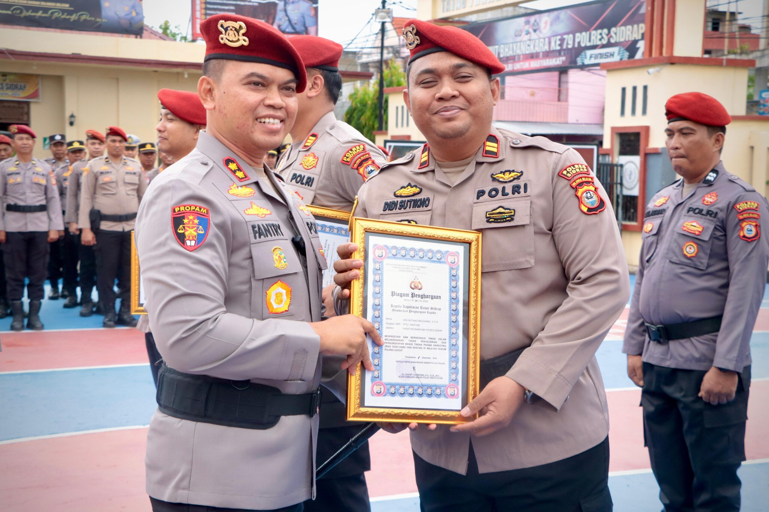 Sidrap – Kepala Kepolisian Resort Sidrap Akbp Fantry Taherong memimpin apel peringatan HUT Reskrim Polri ke 78 Tahun 2025. Kegiatan tersebut dirangkaikan dengan penyerahan penghargaan kepada personel Reskrim Polres Sidrap yang dinilai berprestasi dalam pengungkapan beberapa kasus menonjol yang terjadi di Wilayah Kabupaten Sidrap.