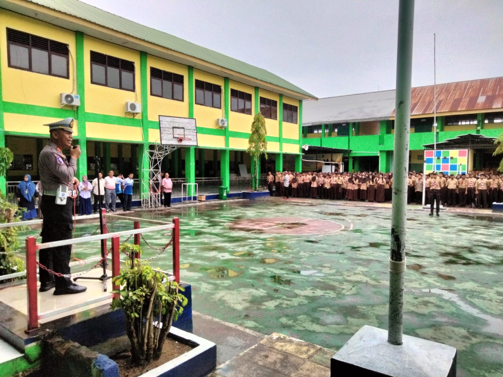 “Kami juga mengajak pihak sekolah untuk bersama mengawasi dan mengedukasi para pelajar agar disiplin dalam berlalu lintas,” ujar AKP Abang Lamuddin dalam arahannya.
