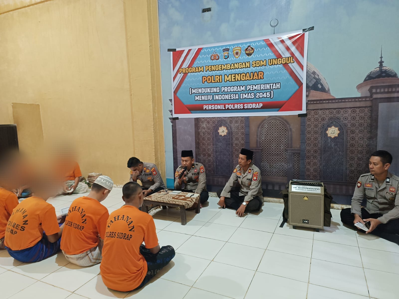 SIDRAP, — Polres Sidrap melalui Program “SDM Unggul Polri Mengajar” kembali menunjukkan komitmennya dalam pembinaan Sumber Daya Manusia (SDM), termasuk kepada para tahanan. Kegiatan ini dilaksanakan di ruang tahanan Polres Sidrap dengan mengusung tema “Mendukung Program Pemerintah Menuju Indonesia Emas 2045”. Jumat (16/05/25).