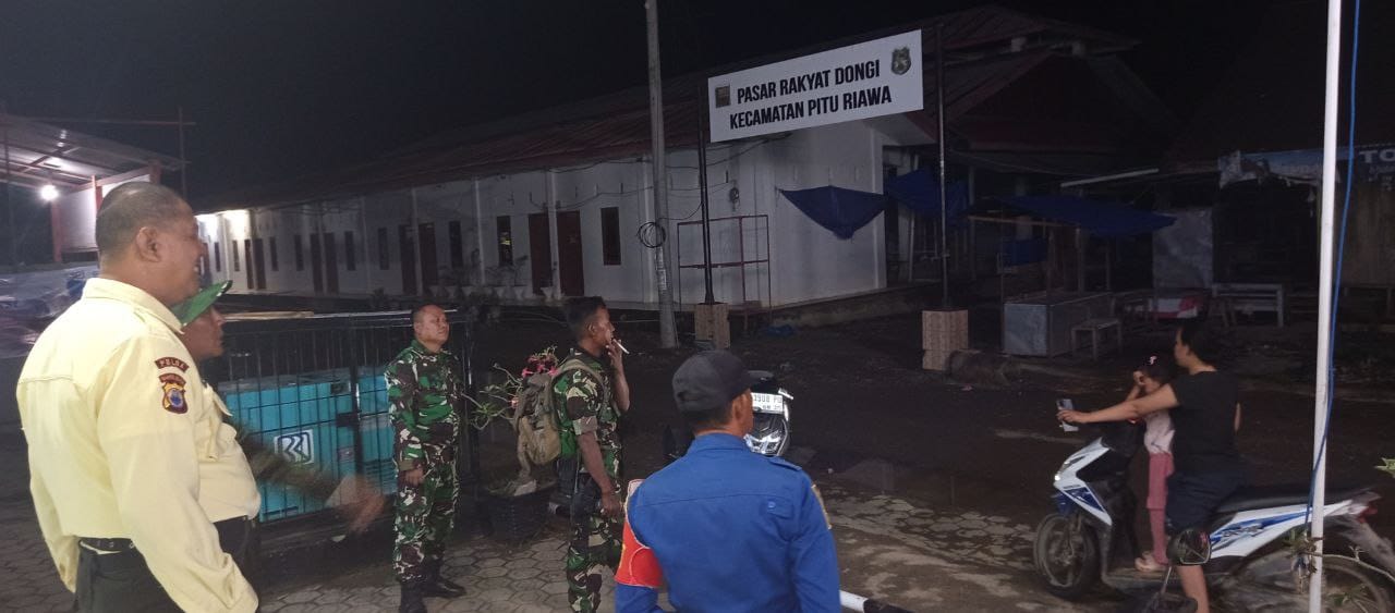 SIDRAP – Guna memastikan situasi keamanan dan ketertiban masyarakat (Kamtibmas) tetap kondusif, Personel Koramil 1420-05/Dua Pitue bersinergi dengan petugas Pemadam Kebakaran (Damkar) melaksanakan patroli siskamling di wilayah Desa Dongi, Kecamatan Pitu Riawa, Kabupaten Sidrap, Senin malam (05/01/2026).