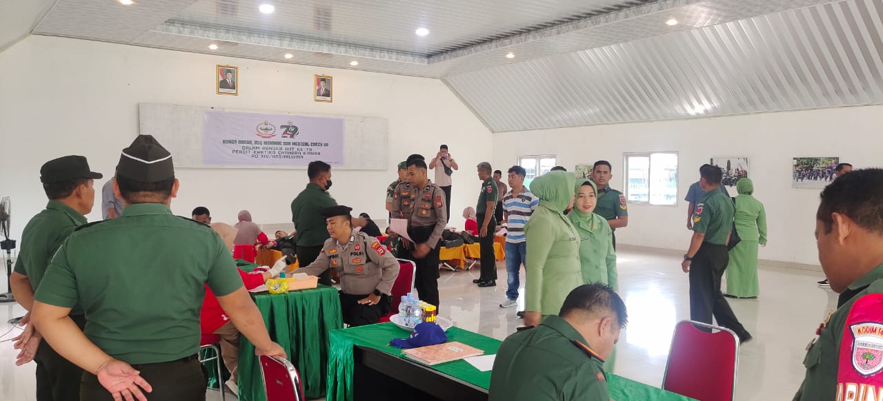 SIDRAP – Dalam rangka memperingati Hari Ulang Tahun (HUT) ke-79 Persit Kartika Chandra Kirana Tahun 2025, Polres Sidrap turut berpartisipasi dalam aksi donor darah yang digelar di Makodim Sidrap, Rabu (12/2/2025). Kegiatan ini melibatkan, anggota TNI, Polri, dan masyarakat umum.