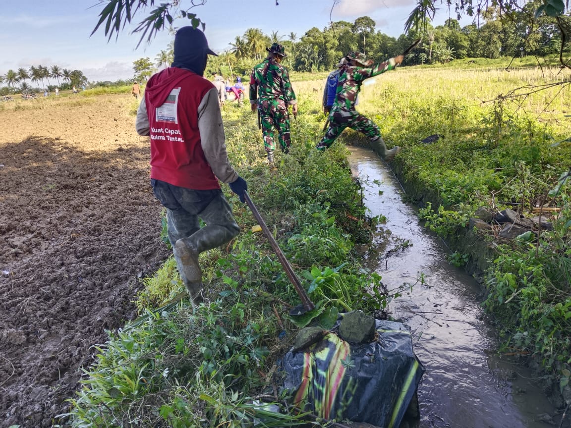 Sebagai upaya memperlancar aliran air menuju persawahan warga, Danposramil Kulo Koramil 1420-06/Panca Rijang Serma Ramang melaksanakan gotong-royong bersama warga membersihkan saluran irigasi yang berada di Dusun Tellang- Tellang Desa Rijang Panua Kecamatan Kulo Kabupaten Sidrap, Sabtu (17/05/2025).