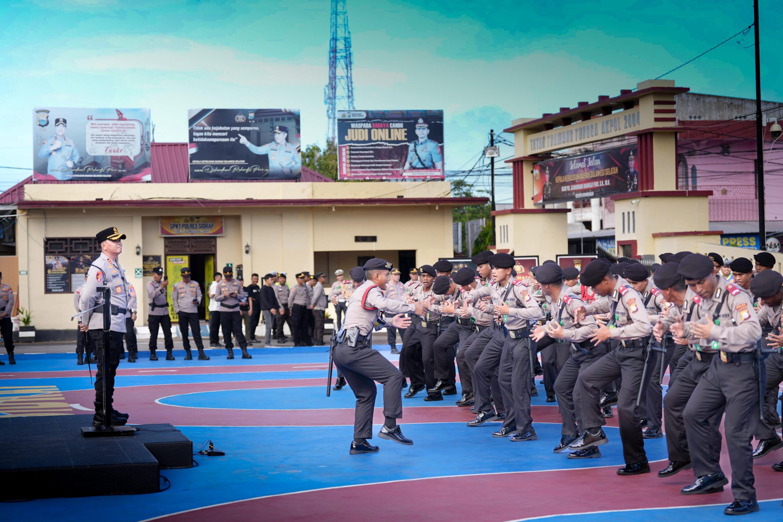 Upacara berlangsung khidmat dipimpin langsung oleh Kapolres Sidrap Akbp Fantry Taherong dihadiri Wakapolres, Para pejabat utama, Personel Polres Sidrap, pembina pengasuh dari SPN Polda Sulsel serta para siswa latja SPN Polda Sulsel