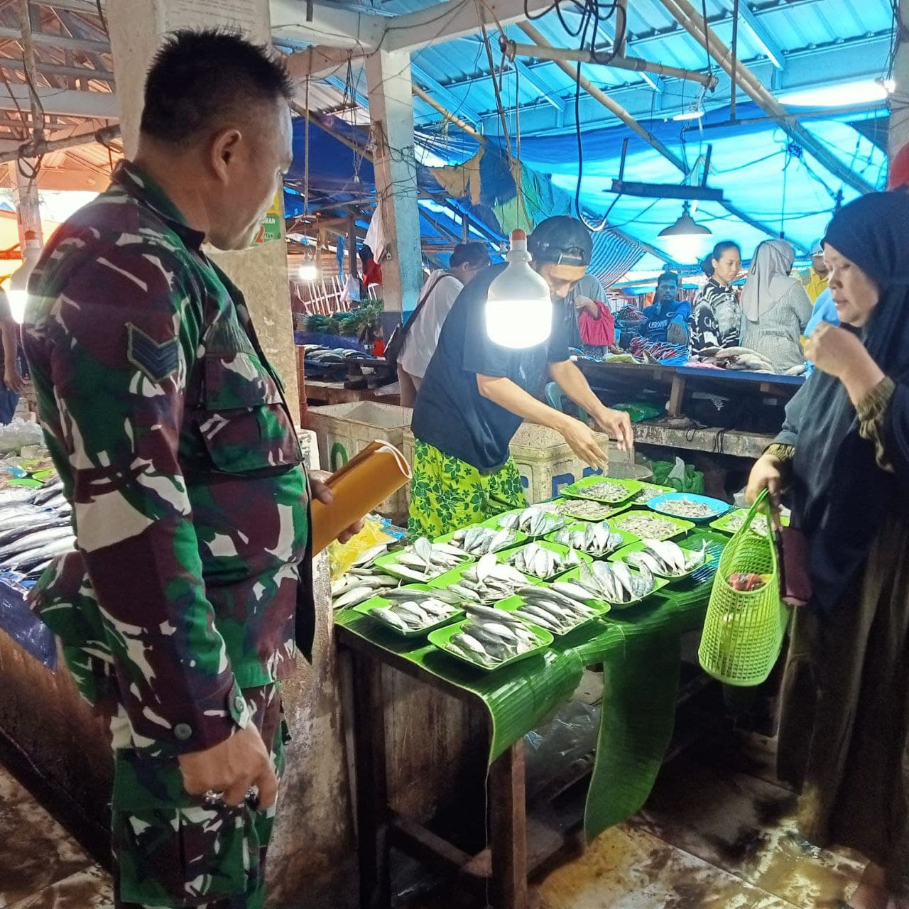 Pengecekan harga Sembako dilakukan Babinsa, seperti pada harga kebutuhan antara lain seperti cabai, bawang merah, termasuk juga Ikan, daging sapi, minyak goreng, beras, serta lainnya yang sering terjadi belakangan ini, tidak hanya itu, Monitoring di pasar juga sebagai upaya untuk menyerap aspirasi yang berkembang di masyarakat terutama harga-harga bahan pokok.”Ujar Babinsa